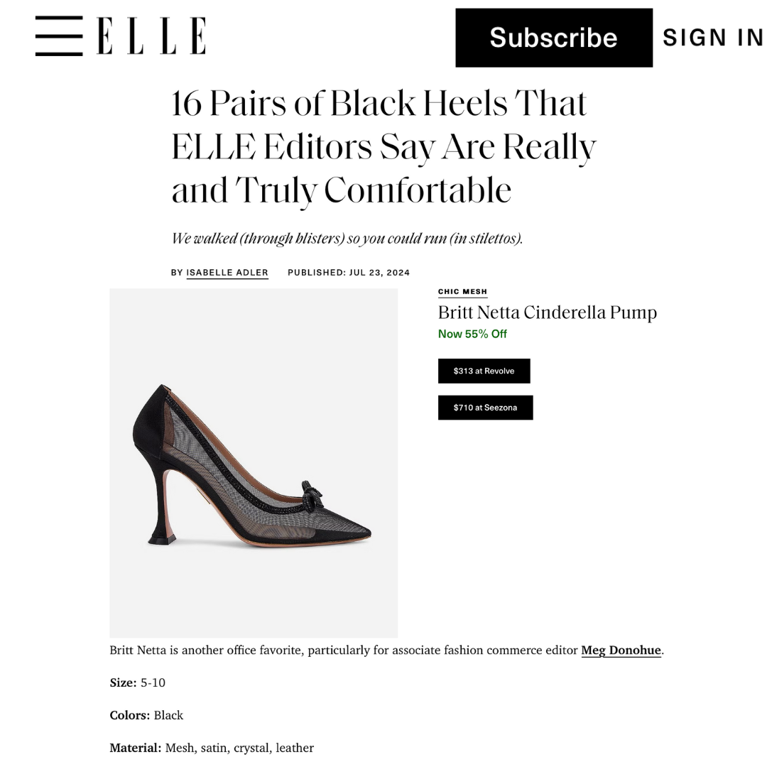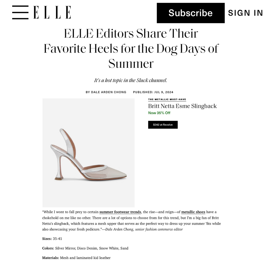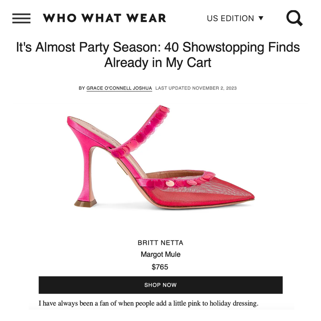 BRITT NETTA LAUNCHES ON REVOLVE ANNOUNCEMENT IN FOOTWEAR NEWS SEPTEMBER 2023