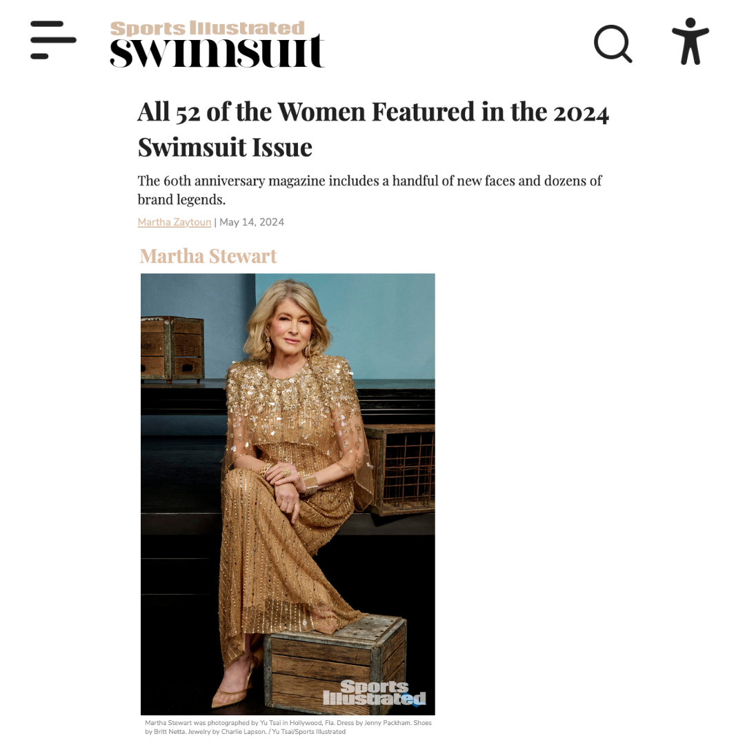 MARTHA STEWART IN ESME SLINGBACK IN SPORTS ILLUSTRATED MAY 2024