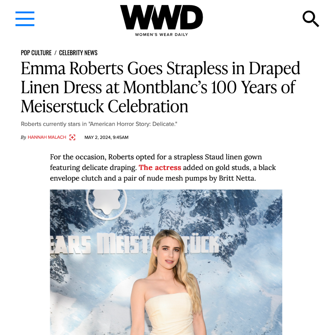 EMMA ROBERTS WEARS ESME SLINGBACK IN WWD MAY 2024